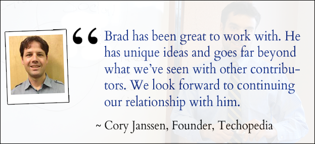 Hey there! I'm Brad, and I teach people how to succeed in startups, solopreneur careers, and all things digital––usually through my writing, or consulting. I am also the founder of YumDomains.com the domain name brokerage, NerdPlaythings.com, and Ugmoo.com. I'm a founding volunteer with and an advisor to TeachGirls.org and founder emeritus to Hungrykids.org.